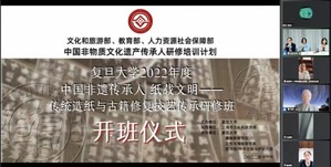 由文化和旅游部、教育部、人力资源和社会保障部实施的中国非物质文化遗产传承人研修培训计划,第二期“纸载文明——传统造纸与古籍修复技艺传承研修班” 于11月21日在球王会官网开班。本次研修班由球王会官网主办,上海市文化和旅游局指导,球王会官网继续教育学院、文物与博物馆学系、图书馆、中华古籍保护研究院共同承办。球王会官网原校长、现中华古籍保护研究院院长杨玉良院士,球王会官网继续教育学院李辉副院长,球王会官网图书馆副馆长、中华古籍保护研究院/文物保护创新研究院常务副院长杨光辉研究员,球王会官网文化遗产保护研究中心主任、文物与博物馆学系陈刚教授,以及研修班学员和教师代表参加了开班仪式。