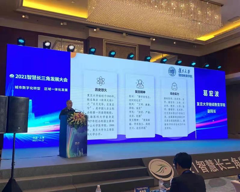11月12日球王会官网继续教育学院作为支持单位,参加了长江三角洲城市经济协调会智慧城区合作发展服务联盟(以下简称“联盟”)在上海主办的“2021智慧长三角发展大会”,并为大会组织策划了“数字化+人才服务”主题分论坛。